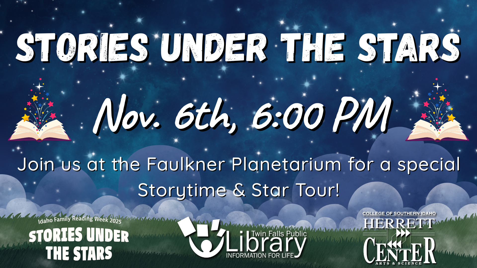 Celebrate Idaho Family Reading Week with a special storytime at the Faulkner Planetarium! Enjoy stories projected across the planetarium sky, followed by a guided star tour.